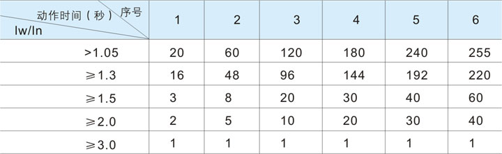 注:表中l(wèi)w為工作電流,ln為額定動作電流。