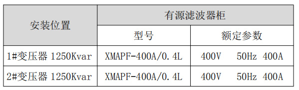 2.1 現(xiàn)場電能質(zhì)量選型和制訂首先,要保證功率因數(shù)要達(dá)到要求,諧波治理方案要能夠保障主要諧波吸收或抵消目的的實(shí)現(xiàn),要保障諧波治理設(shè)備投入使用后系統(tǒng)電路內(nèi)的諧波量對(duì)設(shè)備影響較小;其次,系統(tǒng)改進(jìn)方案要保障裝置自身的安全性。變壓器穩(wěn)定電流多按照正常30%的設(shè)計(jì)要求使用有源濾波器可以治理設(shè)備的諧波.